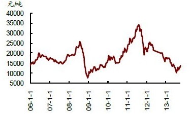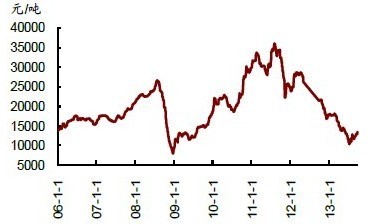 作為天然橡膠的替代品,合成橡膠的價(jià)格與天然橡膠價(jià)格的相關(guān)性較高。2011年年初以來,天然橡膠價(jià)格進(jìn)入下降通道,受天然橡膠價(jià)格聯(lián)動,及產(chǎn)能過剩影響,合成橡膠價(jià)格也從2011年下半年起開始下滑。截至2013年9月,丁苯橡膠和順丁橡膠的價(jià)格相比2013年年初時(shí)分別下降了24%和28%。