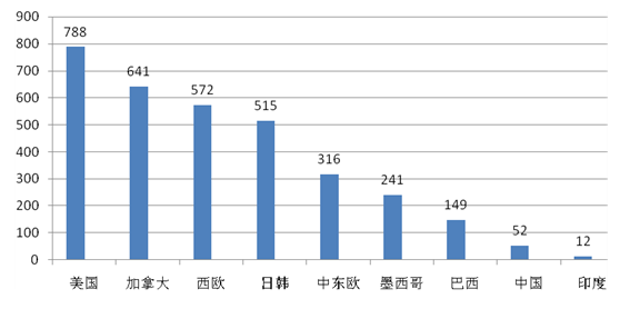 數(shù)據(jù)來源:美國海關(guān)2013年進口乘用車胎數(shù)據(jù)統(tǒng)計