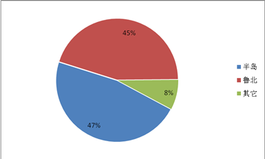 我省輪胎行業(yè)經(jīng)過多年聚集發(fā)展,初步形成了以青島、煙臺、威海為主的半島輪胎產(chǎn)業(yè)集群和以廣饒、壽光為中心的魯北輪胎產(chǎn)業(yè)集群。以上兩個集群內(nèi)的子午胎產(chǎn)能分別占全省的47%和45%,產(chǎn)業(yè)集群建設(shè)成效顯著(見表四、圖三)。