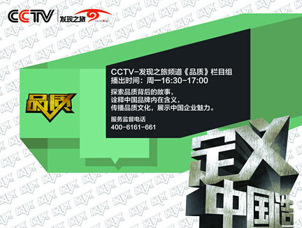 探索品質(zhì)背后的故事,詮釋中國品牌內(nèi)在含義,傳播品質(zhì)文化,展示中國企業(yè)魅力。每周一16:30-17:00 鎖定CCTV發(fā)現(xiàn)之旅,品質(zhì)與您不見不散。更多節(jié)目信息請(qǐng)您登陸網(wǎng)站!